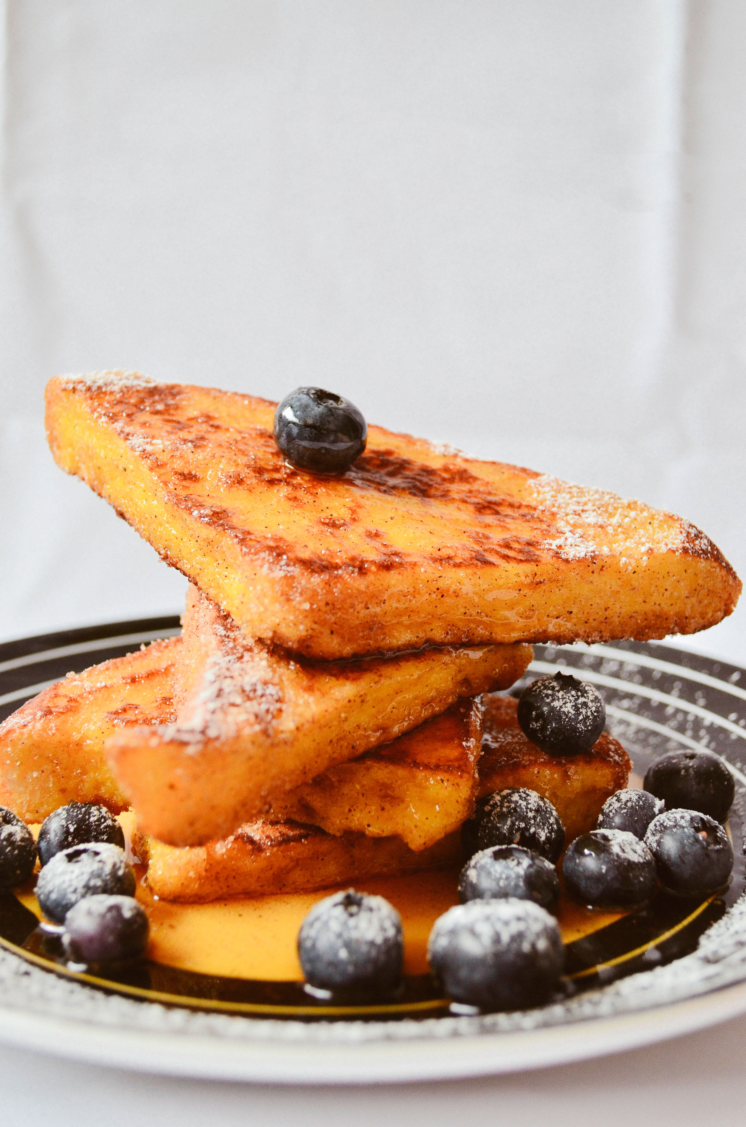 - Растопить в сковороде кусок сливочного масла, подрумянить в нем каждый ломтик хлеба. Подавать, посыпав сахарной пудрой и украсив клубникой, по возможности.