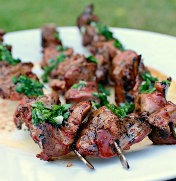 Шашалык из телячей печенки