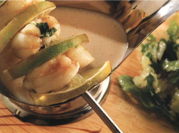 Кебаб из морского черта с подливкой из сердцевины ананаса