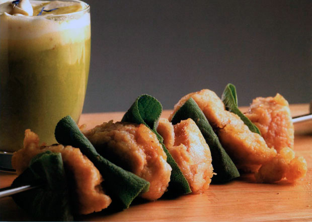 Хрустящий кебаб из «сладкого мяса» с соусом из зеленого горошка