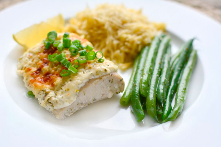 - Выложить филе на блюдо, залить соусом, посыпать зеленью петрушки.