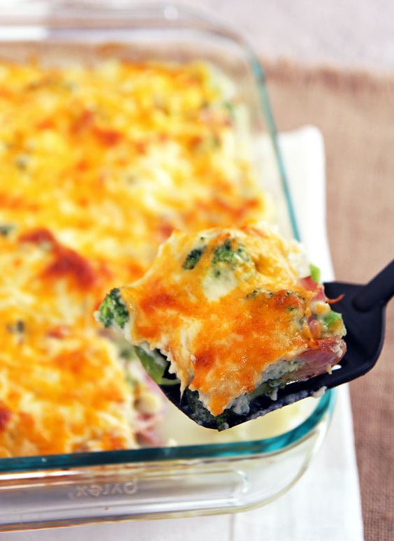 Запеканка из ветчины, горошка, сыра и макарон в соусе бешамель