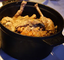 - Добавить бульон и белое вино, тушить при слабом нагреве 45 минут, затем добавить меткий картофель, досолить по вкусу и продолжать тушение еще 30 минут.