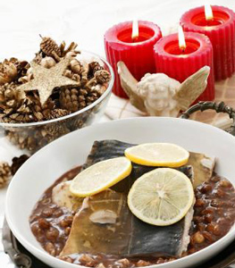 - Сок выпарить, вложить промытый изюм и цедру. Рыбу положить на блюдо и залить соусом.